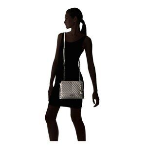 Strike a pose with metallic twist-lock quilted polyurethane with the Jessica Simpson™ Bobbi Shoulder bag with an adjustable crossbody strap.