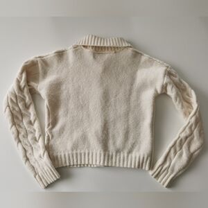 WHITE / CREAM CABLE KNIT RHINESTONE SNOWFLAKE BUTTON COLLAR CARDIGAN