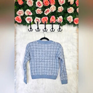 Wrap yourself in timeless elegance with this Jessica Simpson cardigan! Its soft, pastel blue hue and delicate button closure exude a touch of vintage charm. Crafted from luxurious knit fabric, this classic cropped design drapes elegantly across the shoulders, adding a feminine flair to any outfit. Perfect for layering over dresses or tops, this cardigan's subtle sophistication will elevate your everyday style. A versatile and chic addition to any wardrobe!
