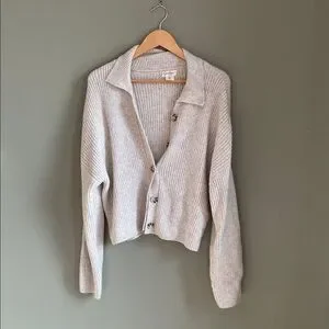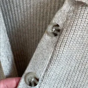 Elegant cream cardigan with button-up front. Soft ribbed texture. Ideal for layering.