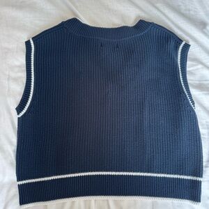 Jessica Simpson Dark Blue sweater vest Knit Top white trim Large preppy