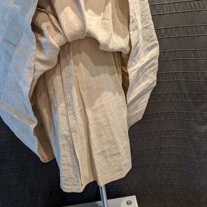 Beautiful 100% linen, fully lined sand-coloured dress by Jessica Simpson with white bows on the front and pockets! The halter is adjustable with 3 snaps behind the neck.