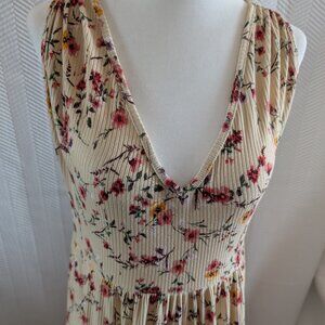 Jessica Simpson Floral Ribbed Maxi Dress V-Neck Sleeveless Medium Cottagecore