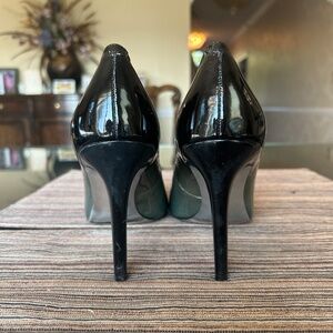 These Jessica Simpson patent leather stilettos are beautiful and unique. They are a deep green that inbred into black. The round toe is cute and comfortable. The stiletto heel height is 4”. These heels were worn only once and they are in excellent condition.