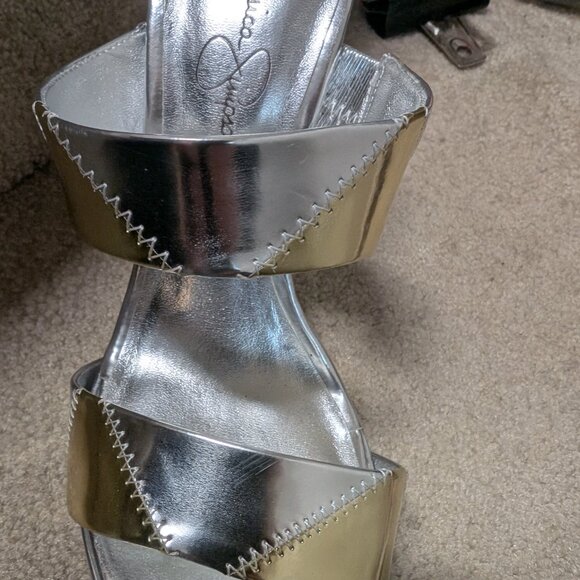 Jessica Simpson JS-Rosie in Silver and Gold Foil Mules