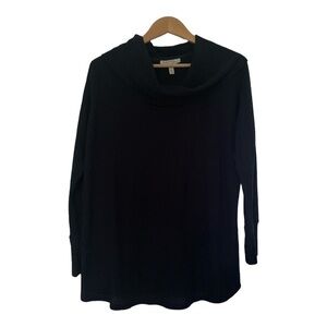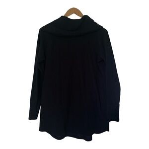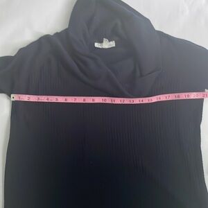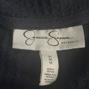 This Jessica Simpson maternity top is designed to stretch during pregnancy but can also be worn with leggings after pregnancy. It features a waffle weave and cowl neck. The color is navy. It is in gently used condition.