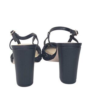 -FEATURES: Woven front details, pointed toe, sling back with metal closure, block heel, very sophisticated.