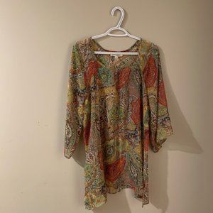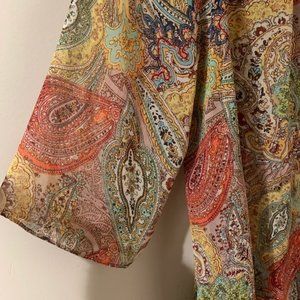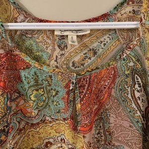 EUC Jessica Simpson sheer paisley-print tunic in women’s maternity size medium.