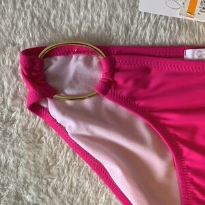 Jessica Simpson Pink Bathing Suit Bottoms with Gold Rings Size Small NWT