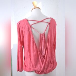 Jessica Simpson | Pink acid wash open cross back cropped sleeve women's shirt barbiecore style. women's size small