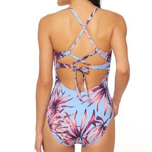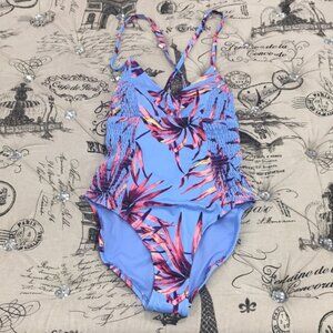 Jessica Simpson Printed Smocked-Sides Swimsuit