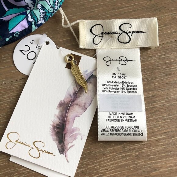 Jessica Simpson Reversible Floral Bikini Bottom Poly Blend Blue Yellow Sz L NWT