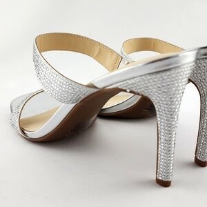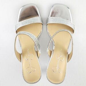 Jessica Simpson Silver Rhinestone Double Strap Slip On High Heel Sandals Size 9M
