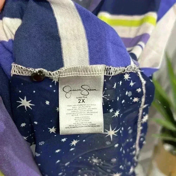 Get ready to stand out in style with our trendy and playful multicoloured top! The T-shirt front boasts a cool blue, green, and purple striped design, while the sheer back features a fun blue and gray star pattern. Plus, the low-cut armholes add a unique touch, perfect for those who want to break away from the ordinary. Don't miss out on this cuteness overload!