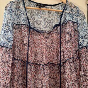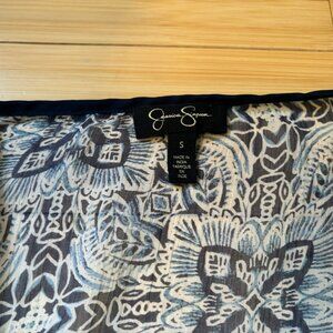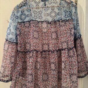 Beautiful, flowing, lightweight Jessica Simpson blouse. Sheer blue and purple designed with tassels. Can be worn over a bathing suit or tank top with a pair of shorts/jeans. EUC. Only worn a few times.