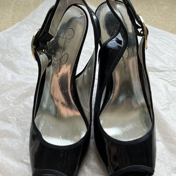 Jessica Simpson Women Wedge Heels Open Toe SlingBack New Shiny Black Size 7