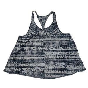 Jessica Simpson Women's ABEBE Racer Back Swing Tank Ethnic Print. Super cute boho tank with wide cut that's extra styled when knotted in the back or front. Low cut armpits and pleated look at the back. Tied racer back with grey and black print. Perfect post yoga class, the beach, or with a pair of jeans.