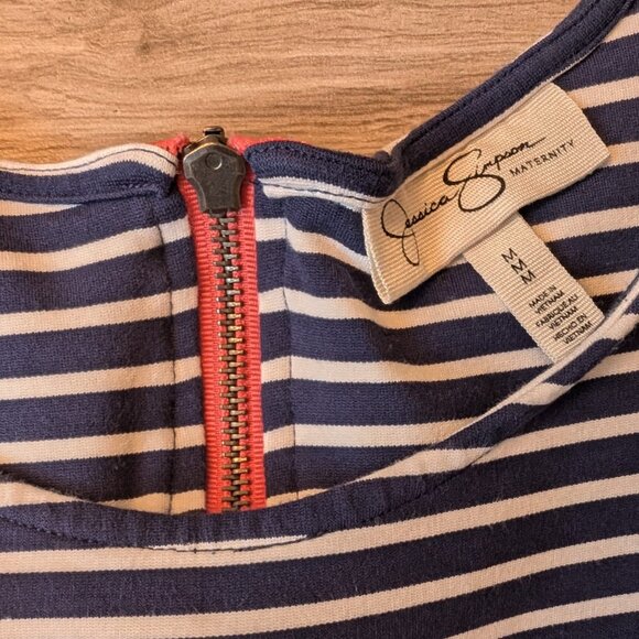 Jessica Simpson Women’s Striped Bodycon Dress Navy White Medium Exposed Zipper