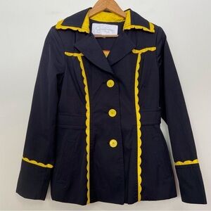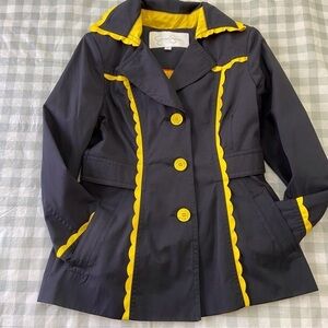 Jessica Simpson amazing trench coat navy blue yellow spring barbiecore jacket