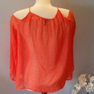 Jessica Simpson flowy embroidered with tassels cold shoulder blouse. Bright orange soft and flowy. size Medium