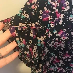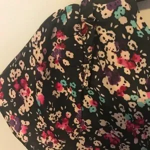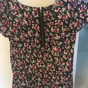 Pre loved short sleeve floral blouse with a bit of edge with the zipper in the back. In excellent condition. No stains or defects.