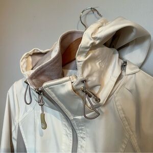 Beautiful white, beige spring jacket with detachable hood. Size M Very good condition.
