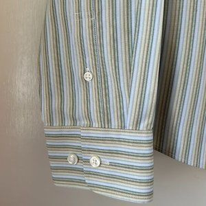 Jessica Sport 100% cotton green and yellow striped button down shirt-Size 14
