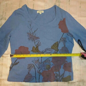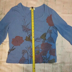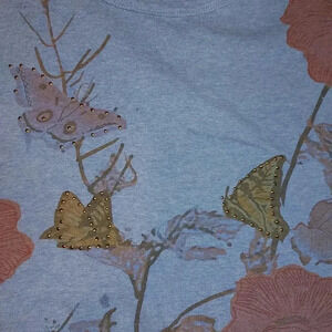 3/4 sleeves t-shirt, blue with flower and butterfly prints and some studded details