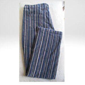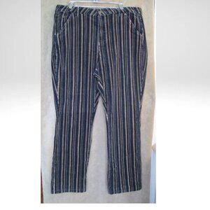 Enhance your wardrobe with these Jessica corduroy pants featuring a stylish black and gold striped pattern. The 98% cotton and 2% spandex blend ensures comfort, breathability, and stretch, making it perfect for everyday wear. The pants are designed with a button, zip closure, and feature belt loops for a sleek, polished look. They also highlight a flattering bootcut leg style and ankle length, perfect for pairing with your favourite boots or heels. These pants come with buttons and zipper accents and are easy to care for, providing you with a worry-free maintenance. They are a must-have addition to any fashion-forward woman's wardrobe.