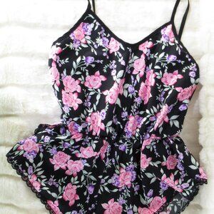 Jessica Vintage Floral Satin Teddy Romper Panties M/L