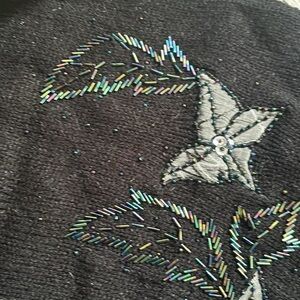 This sweater is absolutely stunning. Has gorgeous beading all over it and has a little shine to it. Perfect to wear with anything.