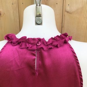 Gorgeous pink/ fuchsia sleeveless top. Size 14 petite. High neckline with layered ruffle details. Button closure on the back.