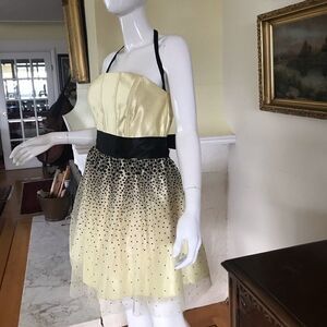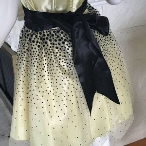 Lovely size 7 vintage Jessica McClintontock for Gunne Saxe party / formal dress in light yellow, tulle and satin, fitted bodice. Please note this was originally a strapless dress, but straps were added which could be removed.