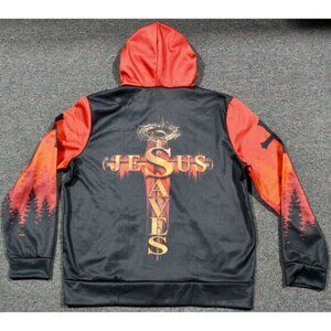 Jesus Christ Saved My Life Cross Full Zip Hoodie Jacket Sweatshirt Adult XL