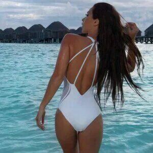 Start the summer with a plunge and shop this elegant V-neck one-piece swimsuit. Complete with a unique multi-strap key hole back and mesh sides you’ll be feeling every bit the bombshell.
