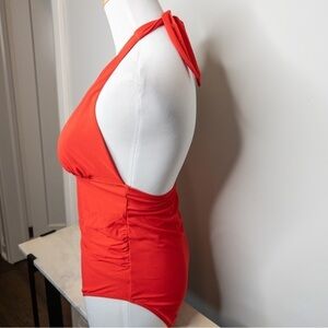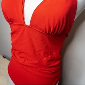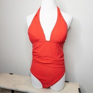 Jets by Jesika Allen Womens Red Halter Mesh One Piece Swimsuit Size 10 Bathing