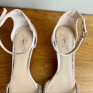 Jewel BADGLEY MISCHKA Joanne Ankle Strappy Block Low Heel Satin Open Toe