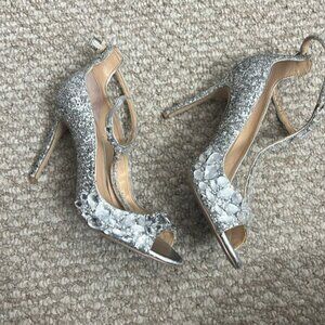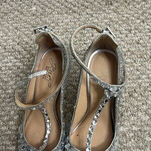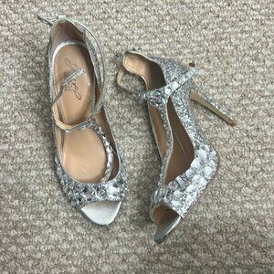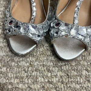 Jewel Badgley Mischka Conroy Metallic Glitter Rhinestone Evening Shoe Size 7.5