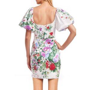 Jewel Badgley Mischka Sz 6 Dress Floral Puff Sleeve Mini Coquette Boho Cocktail
