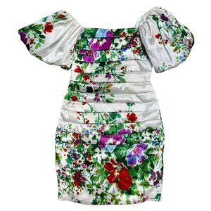 Jewel Badgley Mischka Sz 6 Dress Floral Pleated Bodice Puff Sleeve Mini New