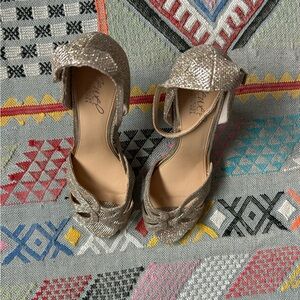 Jewel by Badgley Mischka Silver/platinum Glitter Heels size 8.5