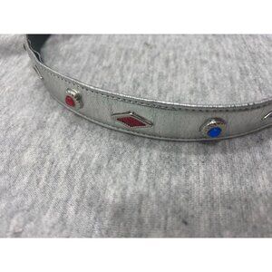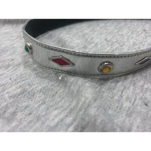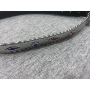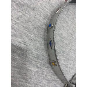 Jeweled Silver Leather Belt Women's Size Medium Rhinestone Rivet Stone