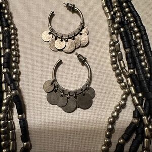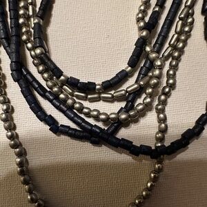 Beautiful necklace with deep blue and silver beads (this is not Sterling silver) And one pair of earrings