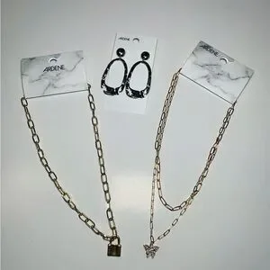 Two necklaces one pair of earrings
