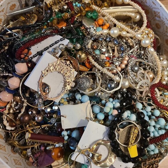 Each bag includes a curated of pieces of modern and vintage costume jewelry, perfect for adding a touch of elegance and fun to any outfit.