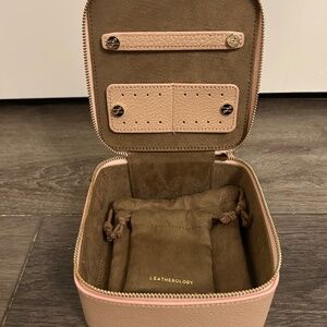 Set of 2 genuine leather jewelry boxes or cases, one small and one medium in light pink. The brand is Leatherology.