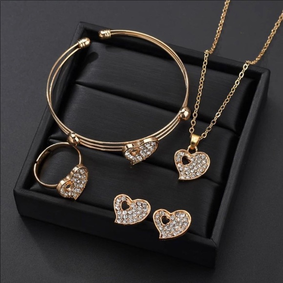 Cute and trendy 4 pcs Heart CZ Crystal Necklace Earrings Bracelets and ring Sets. Good quality, great for casual and evening wear