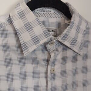 Jhane Barnes Button Down Shirt Checkered Plaid Cotton Flip Convertible Cuffs