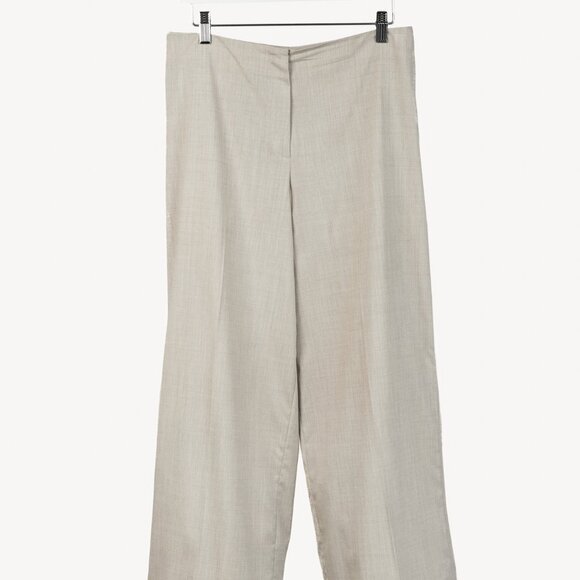 These trousers from Jil Sander are crafted in a grey stretch-wool suiting, and feature a fitted waist with no band, a front snap and zip fly closure, back waist darts, and wide-cut legs.