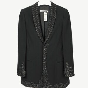Jil Sander Vintage 90's Black Wool-Crepe Beaded Blazer